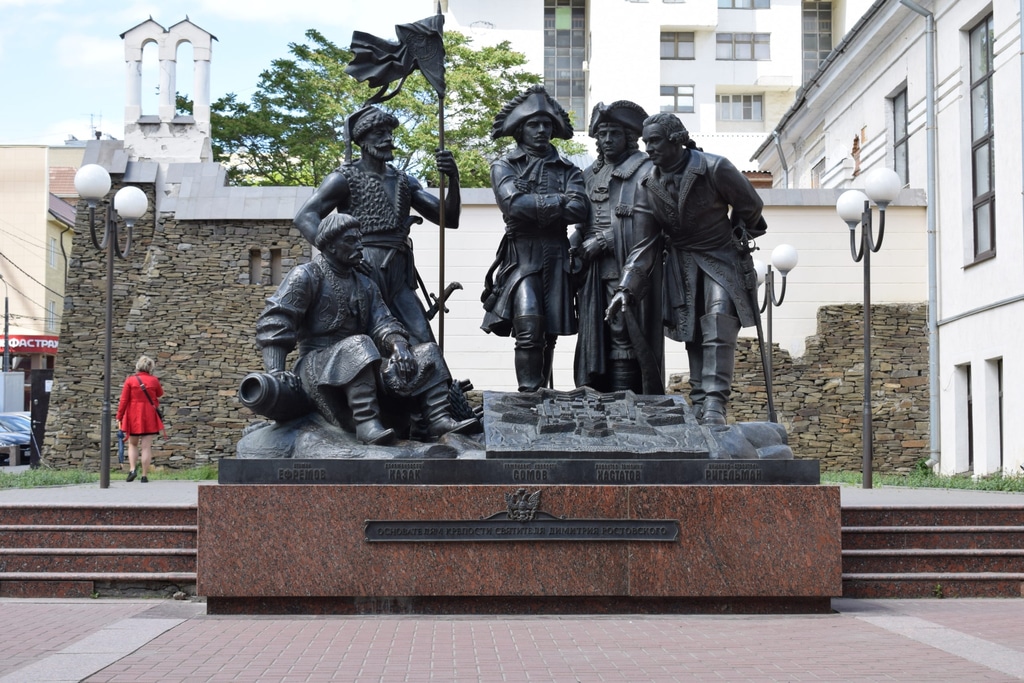 Недалеко от парка 1 Мая на улице Большой Садовой в 2009 году появился памятник основателям ростовской крепости. Создатели памятника включили в скульптурную композицию пять персонажей: атамана Ефремова, доломановского казака, первого коменданта крепости Сомова, директора таможни Хастатова и инженера-строителя Ригельмана. По задумке автора памятника все эти люди принимали самое активное участие в создании ростовской крепости. Остается только верить, что именно так все и было.