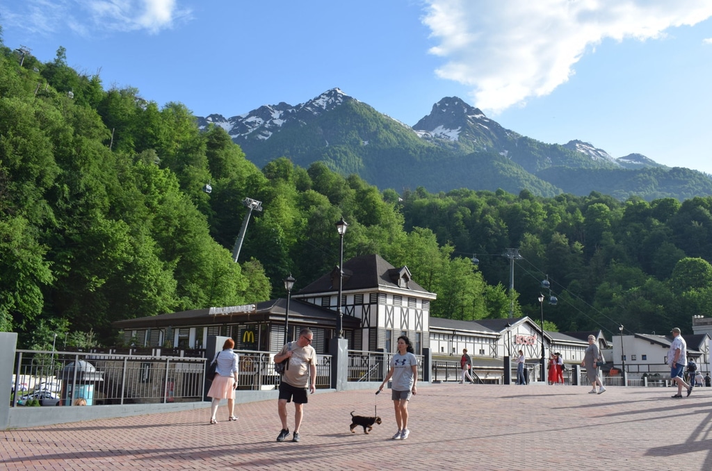 После Олимпийских игр Роза Хутор доступен для всех желающих. Здесь десятки километров классных горнолыжных трасс на склонах горы Аибга и городок Роза Долина с гостиницами, ресторанами и развлечениями. Для тех, кто далек от спорта, подойдет канатная дорога. Едешь себе внутри кабинки и любуешься горными красотами.