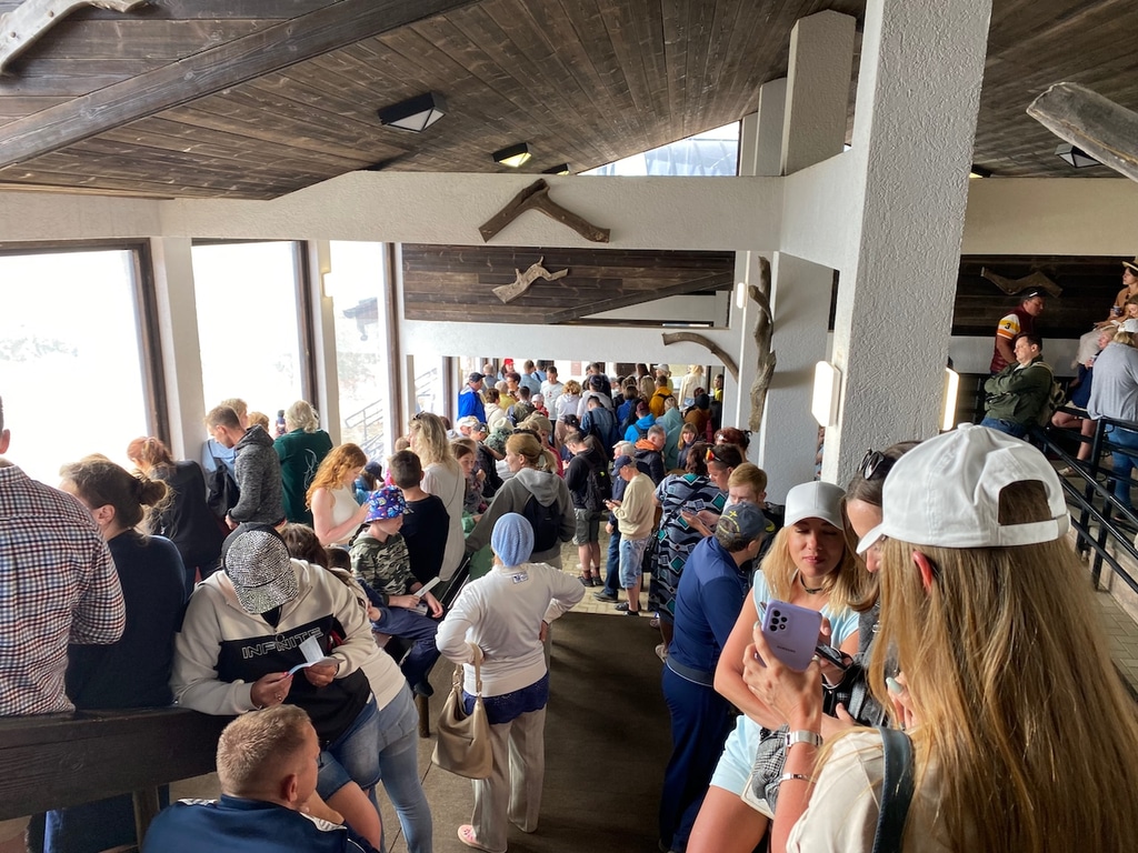 В непогоду канатная дорога встала и прибывшие на Роза Пик люди оказались словно в ловушке. Единственным укрытием от дождя и холода на Роза Пик стал уютный ресторанчик, но хорошие места достались не всем, а только самым проворным. Большинству людей непогоду пришлось переносить стоя на ногах. Но это все же лучше чем мерзнуть на улице.