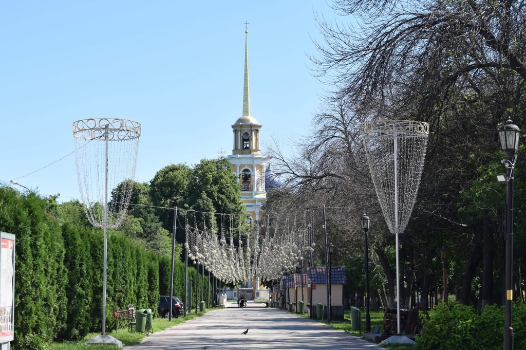 От рязанского князя мы направляемся в Кремлевский парк, а дальше следуем к Рязанскому кремлю. Его колокольню хорошо видно уже издалека. Место, которое сейчас называется парком, находится вне крепостных стен. В древности здесь селился простой люд. Во время нападений неприятеля люди прятались за стенами Кремля.