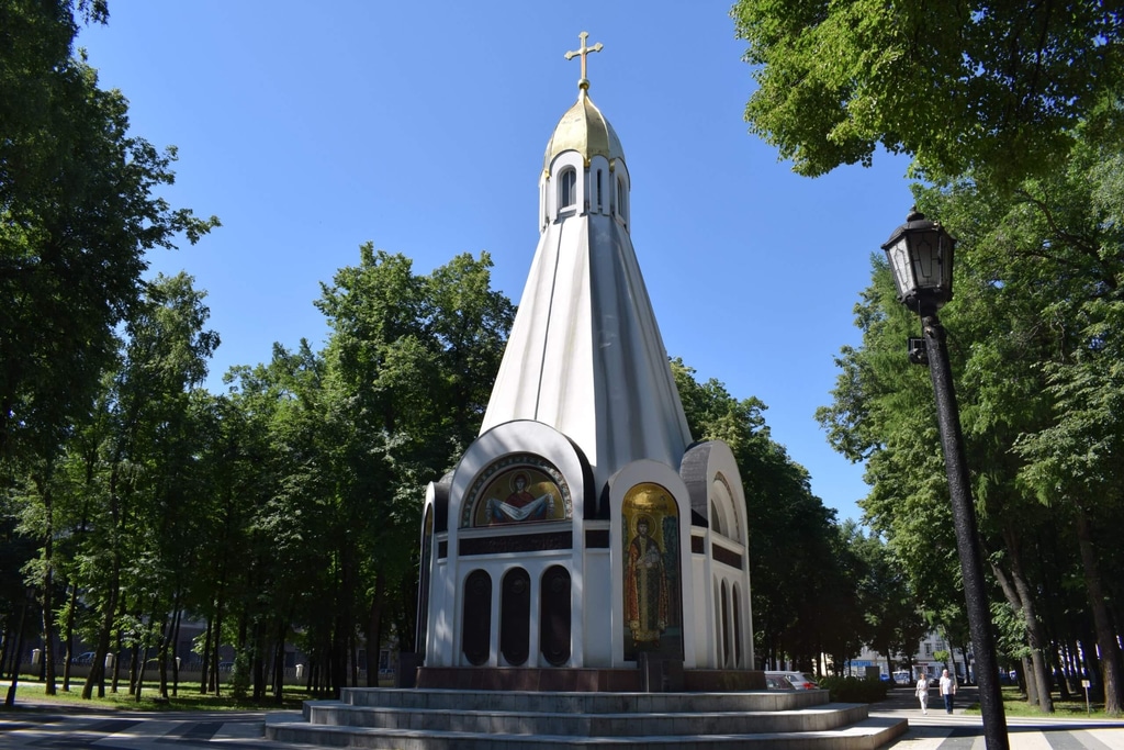 Центральную часть Кремлевского парка занимает Всесвятская часовня. Она появилась в Рязани еще в советское время, в 1995 году. Тогда городу исполнилось ровно 900 лет. Девять плит на стенах часовни описывают историю Рязани. Каждая плита рассказывает о событиях одного столетия.