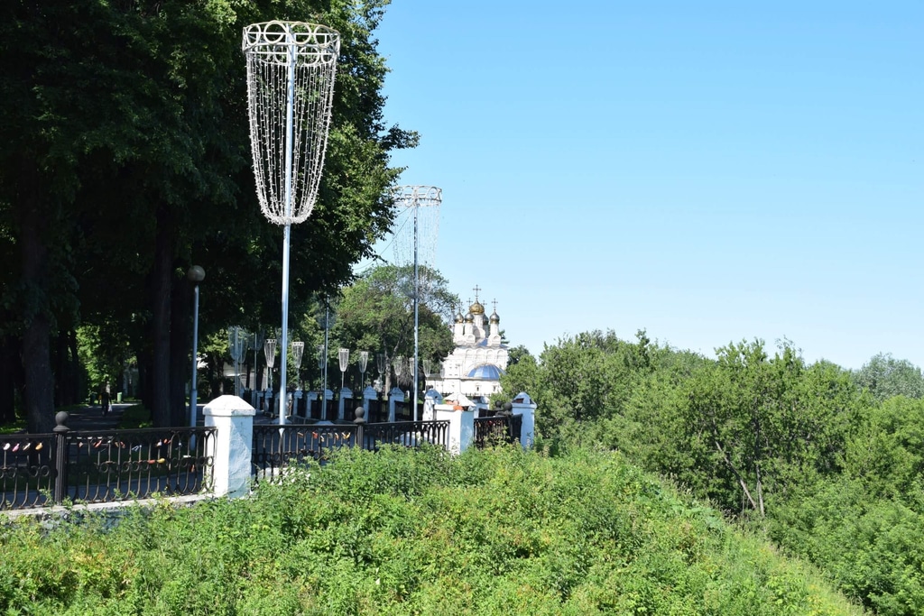 От Рязанского кремля мы следуем дальше по набережной реки Трубеж к Спасо-Преображенскому храму. Кстати сказать, набережная выглядит очень красивой и ухоженной. А вот саму Трубеж за высокими зарослями нам рассмотреть так и не удалось.