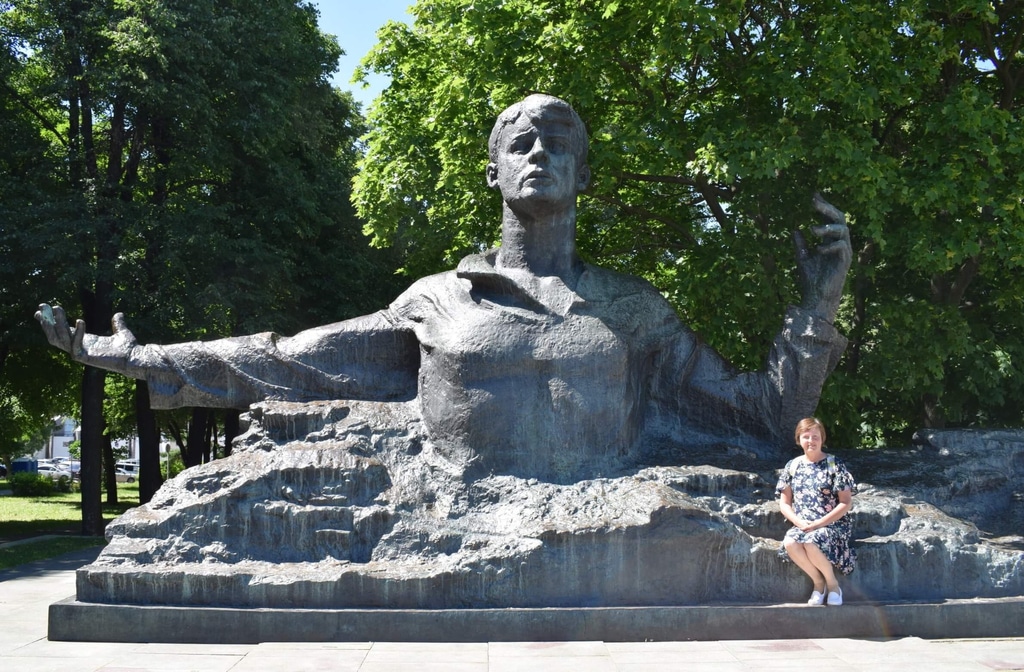 Несмотря на то, что памятник Есенину установлен еще в советское время в 1975 году, смотрится он довольно современно. Поэт в творческом порыве широко раскинул руки в стороны По всей видимости, он читает свои стихи перед публикой.