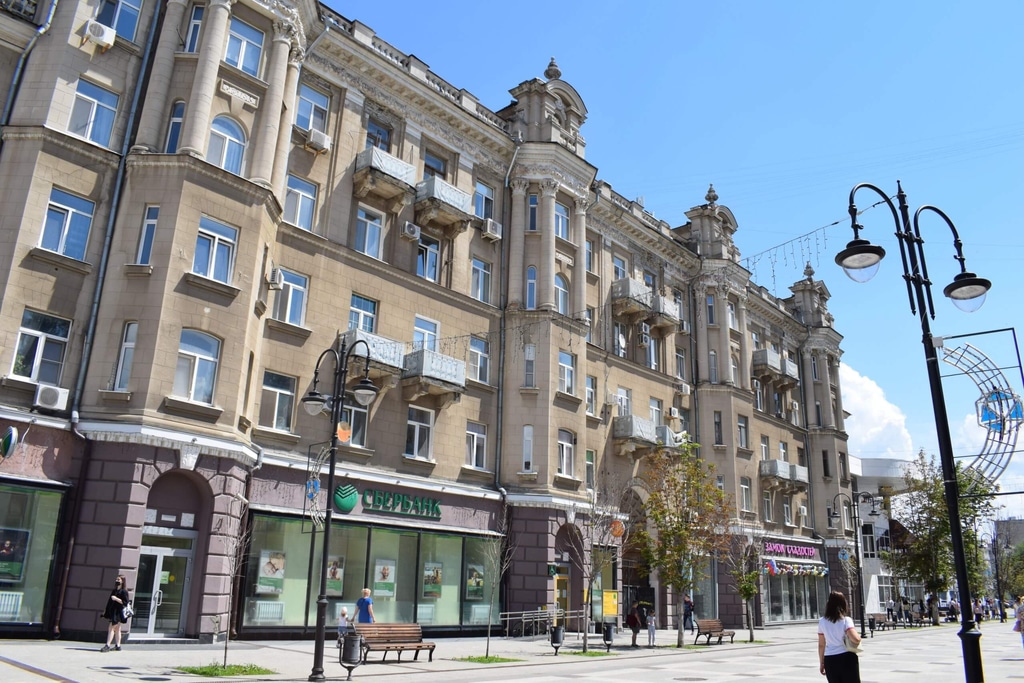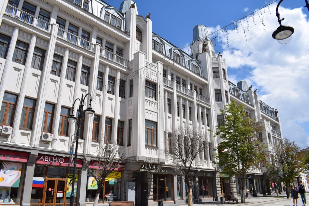 Не менее величественно чем «сталинка» выглядит дореволюционная гостиница «Астория». Здание закончили строить как раз в революционный 1917 год. Естественно после революции Астория перешла в государственную собственность. В 1956 году ее переименовали в «Волгу».