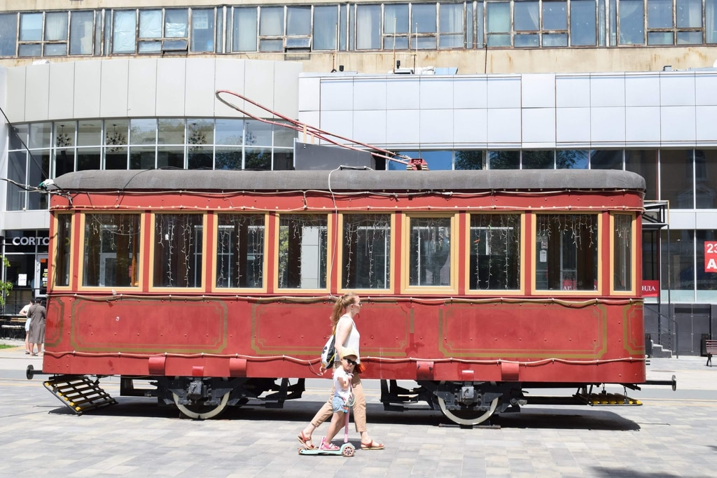 На углу Липок установлен памятник саратовскому трамваю. Хотя, точнее сказать, это даже не памятник, а настоящий электрический трамвай! Только он очень — очень старый! Когда-то он шустро бегал по улицам Саратова. Где-то на этом месте тогда лежали и трамвайные рельсы. Кстати, трамвай саратовцы запустили одними из первых в России в 1908 году.