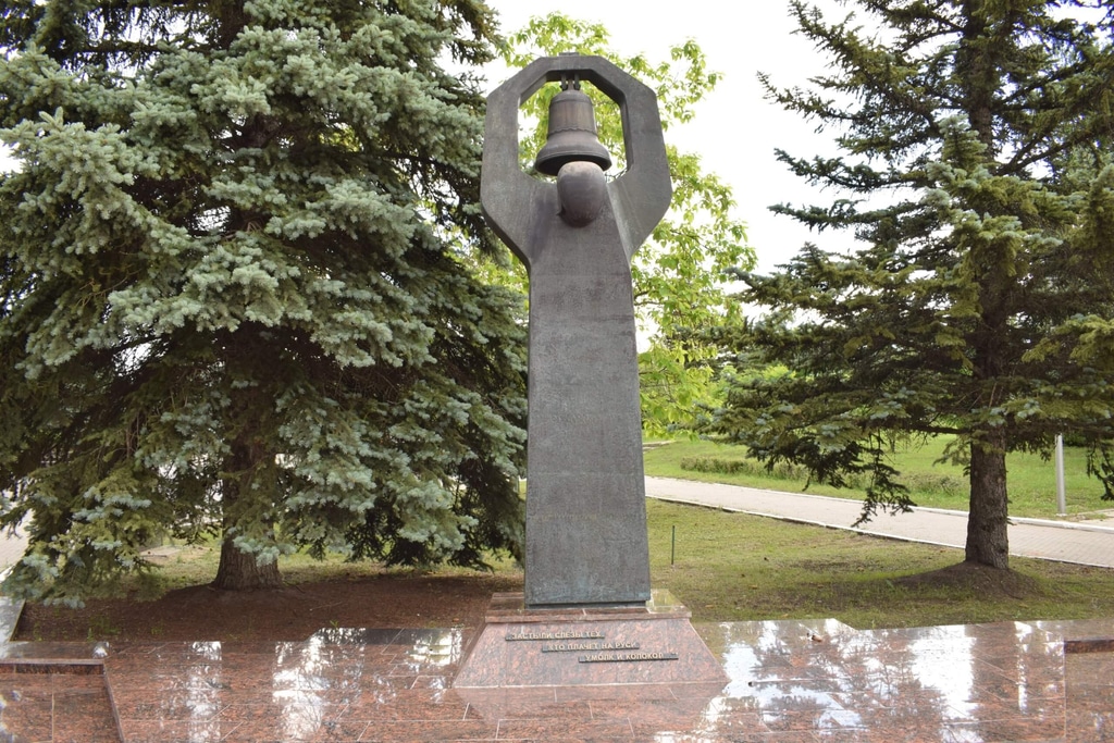 Также в парке Победы нашли место и другие скорбные памятники. Один из них — памятник погибшим в локальных войнах и конфликтах «Молчащий колокол».