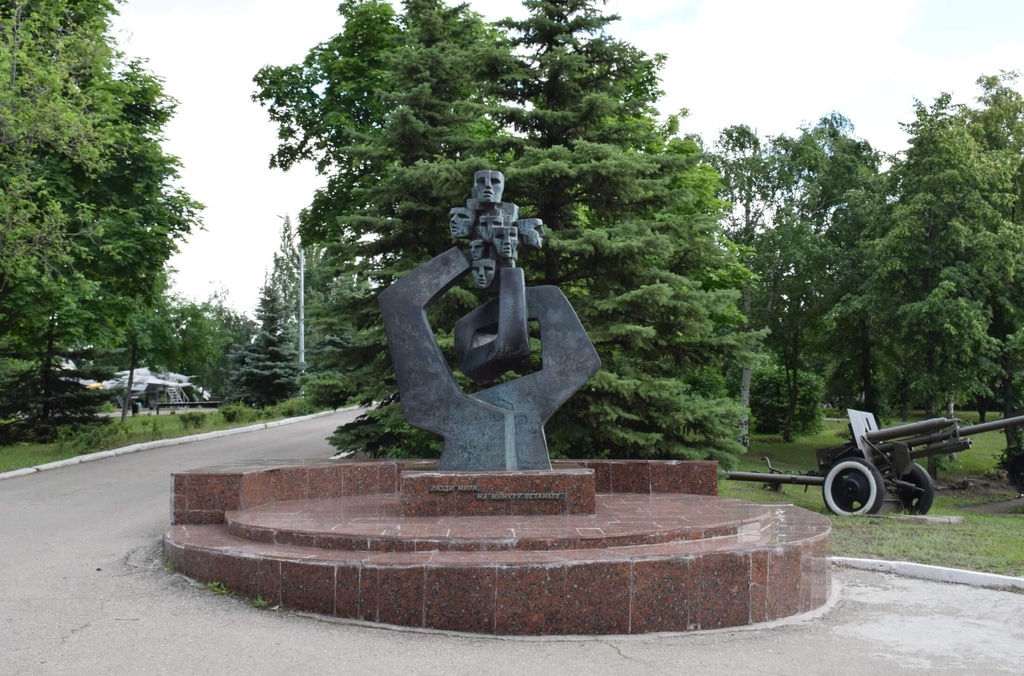 Следующий в виде человеческих масок — памятник детям-узникам фашизма.