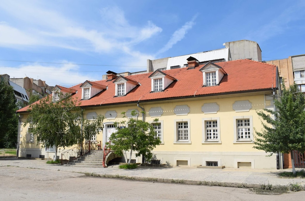 Следующее здание Сарепты — Дом общинной управы. Оно построено в 1781 году и располагается левее кирхи. В доме сначала жили неженатые мужчины. Но после пожара 1823 года все здание сгорело, а после восстановления его отдали общинной управе. Здесь же в своей квартире стал жить и форштеер — председатель общины.