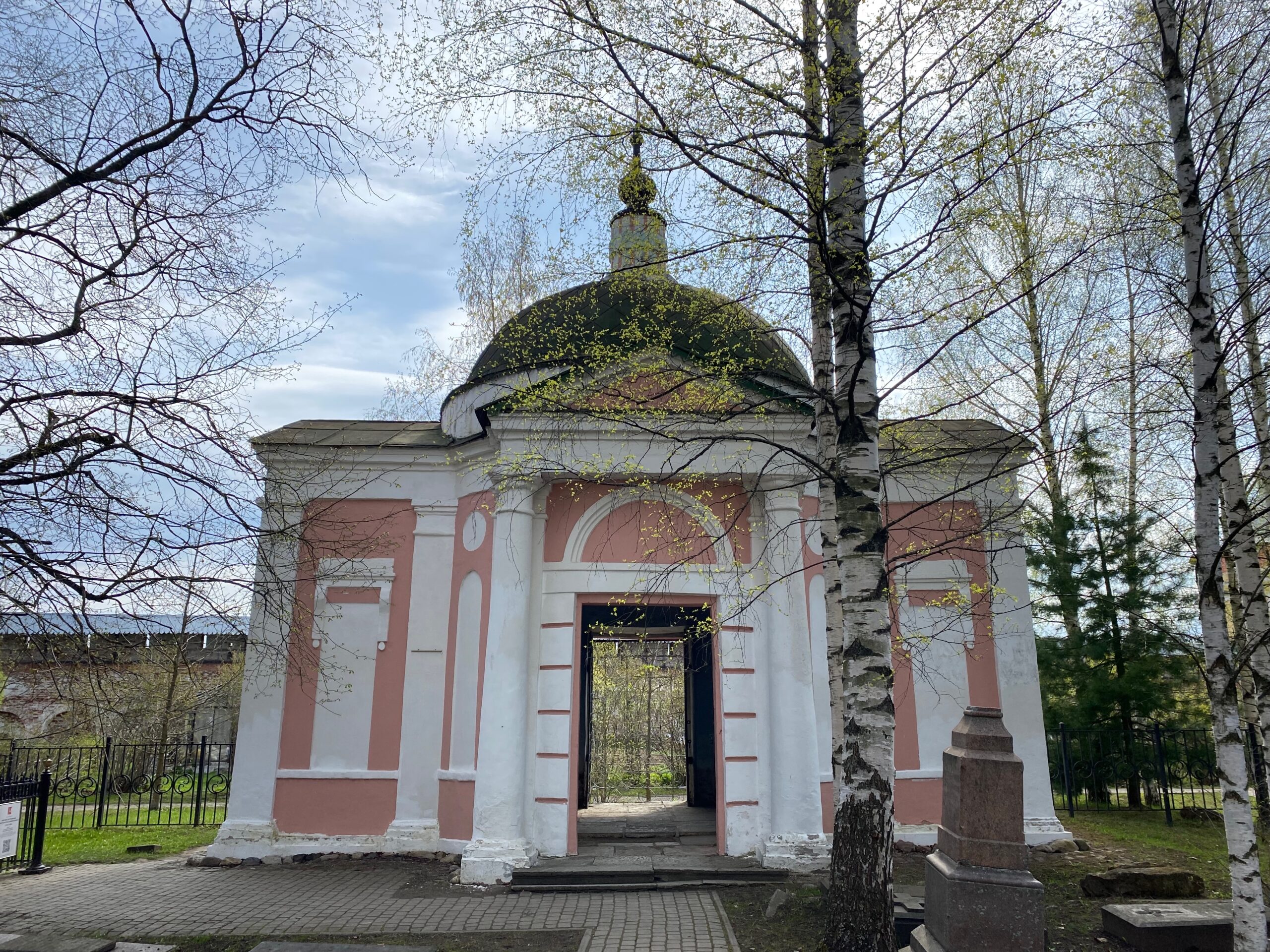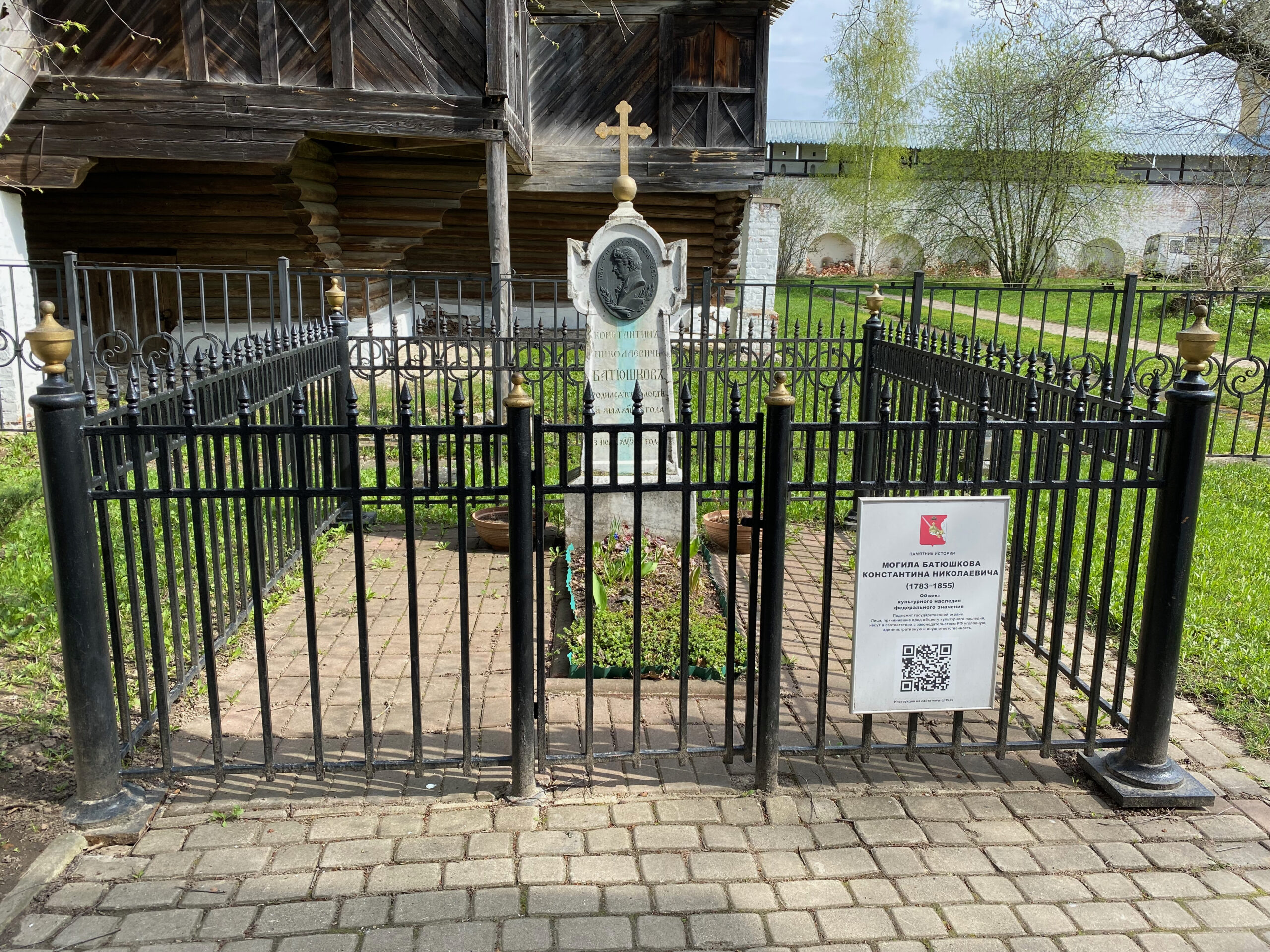 Между храмами раскинулось небольшое монастырское кладбище, где нашли последний приют монахи и те, чья судьба так или иначе связана с историей монастыря. Здесь покоится и известный поэт Константин Батюшков, который провел в Вологде немало лет.