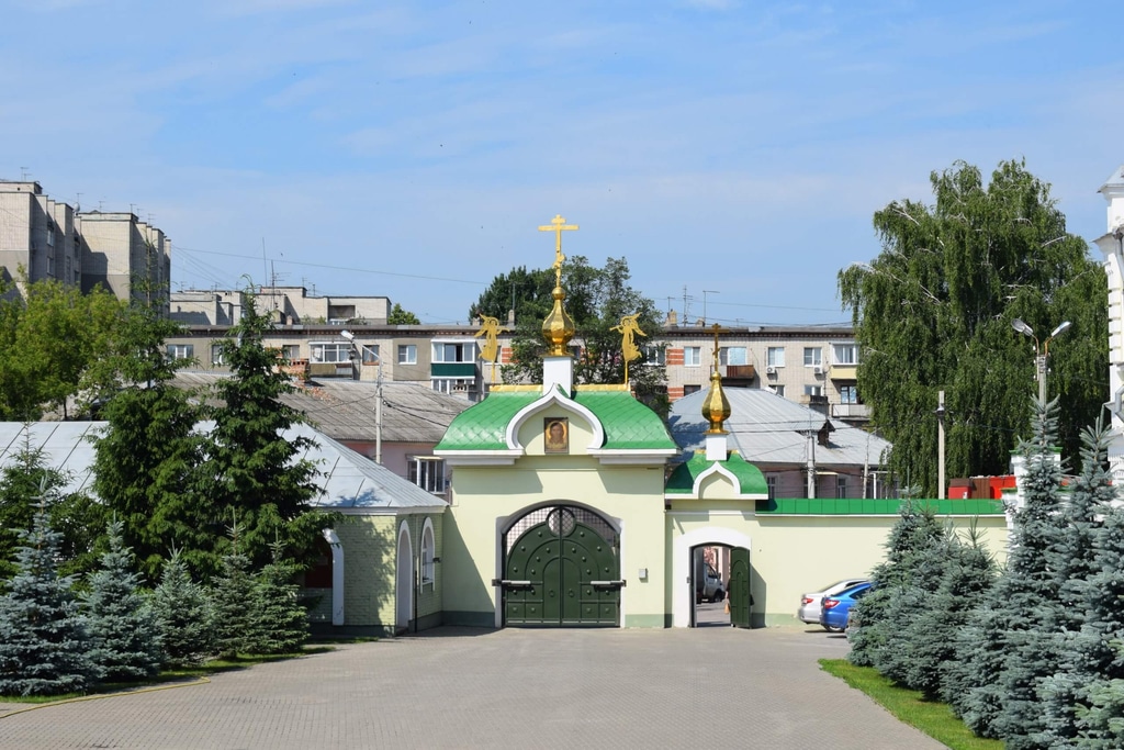 На территорию обители ведут симпатичные ворота с золотыми фигурами ангелов на крыше.