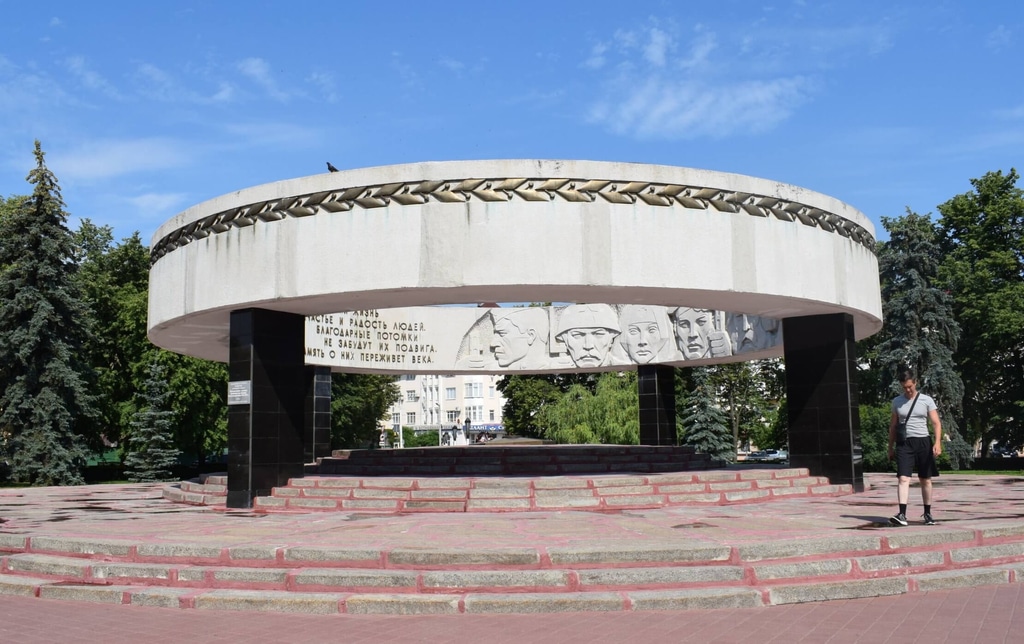 Центральную часть Соборной площади занимает мемориал «Вечный огонь». Он появился еще в советское время в 1970 году. Мемориал посвящен солдатам, погибшим во время Великой Отечественной войны 1941-1945 гг. Памятник представляет собой огромное бетонное кольцо, лежащее на гранитных плитах. Внутреннюю часть кольца занимают памятные надписи и изображения лиц солдат, партизан и медсестер, воевавших на фронте. В центре кольца горит Вечный огонь.