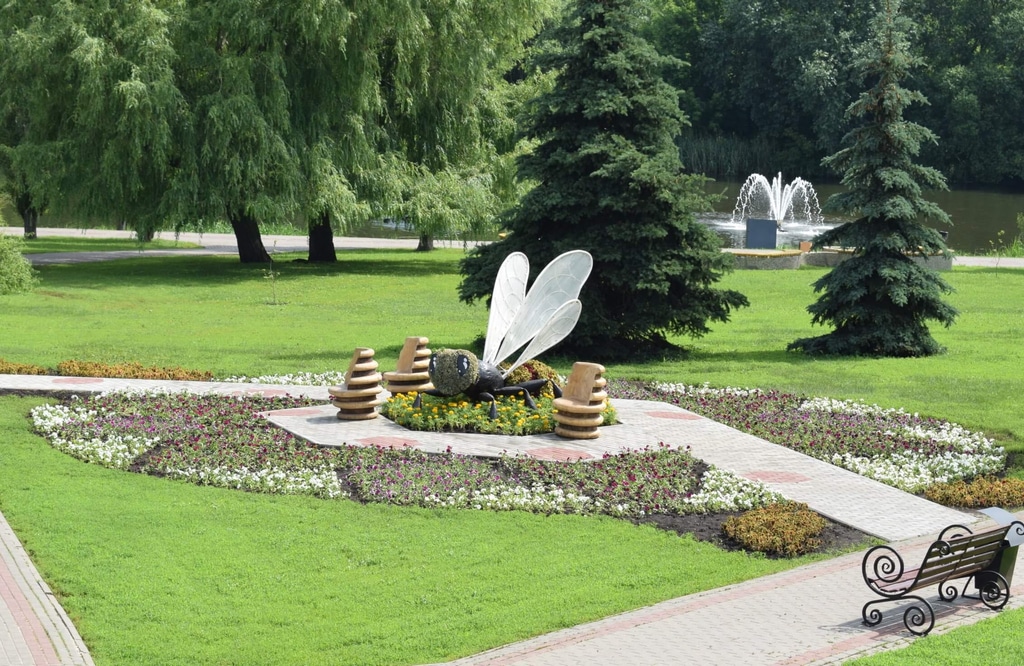 Вот на глаза попалась симпатичная фигурка пчелы — труженицы. Ну разве это не прелесть? Спасибо, местным озеленителям.