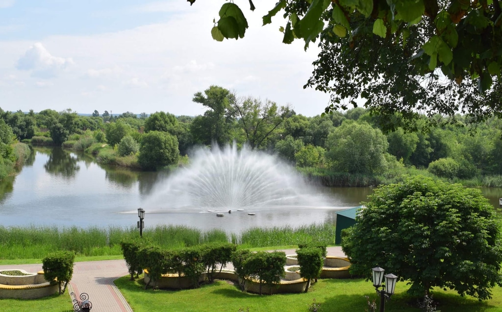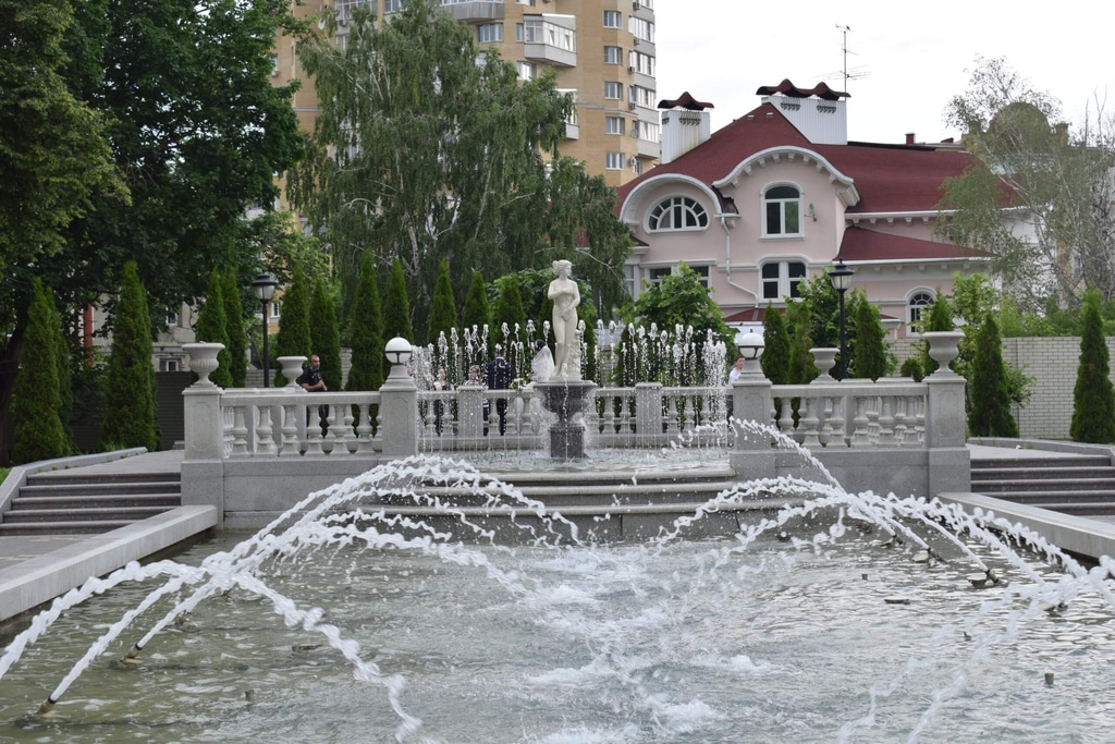 А вот прямо посреди реки Цны оригинальный фонтанчик в виде веера или павлиньего хвоста. Кому как нравится, тот так и назовет. Тоже очень даже милый фонтанчик.