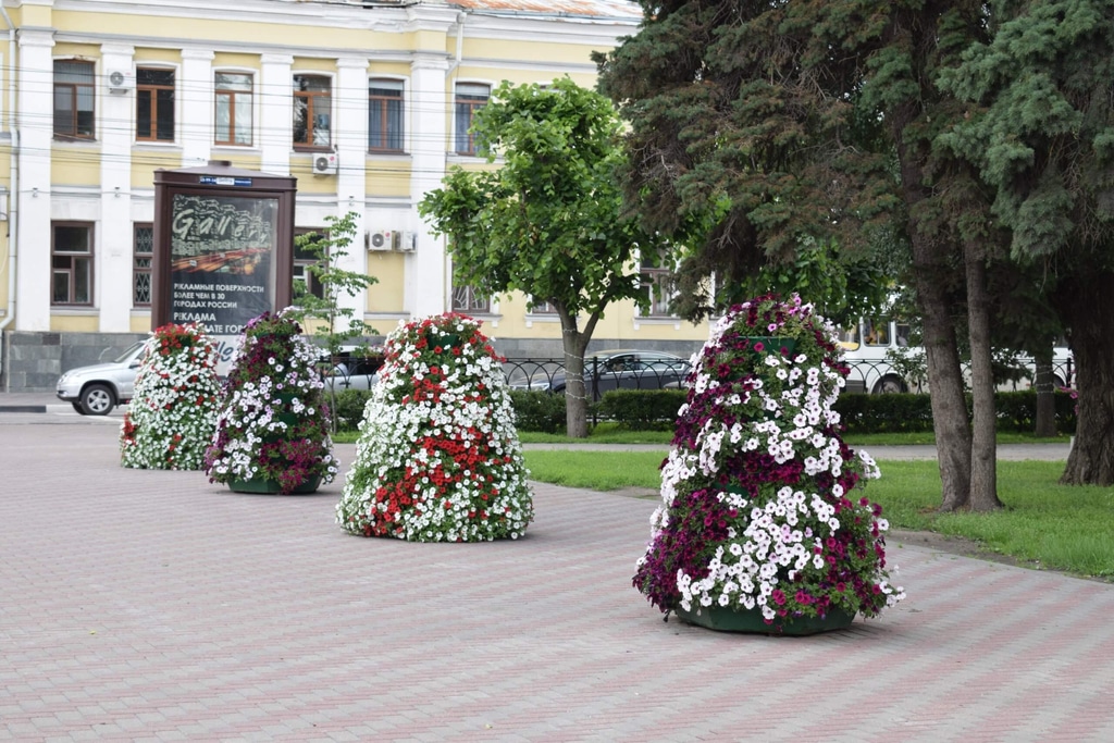 На пути встретились вот такие симпатичные цветочные «елочки» улицы Советской.