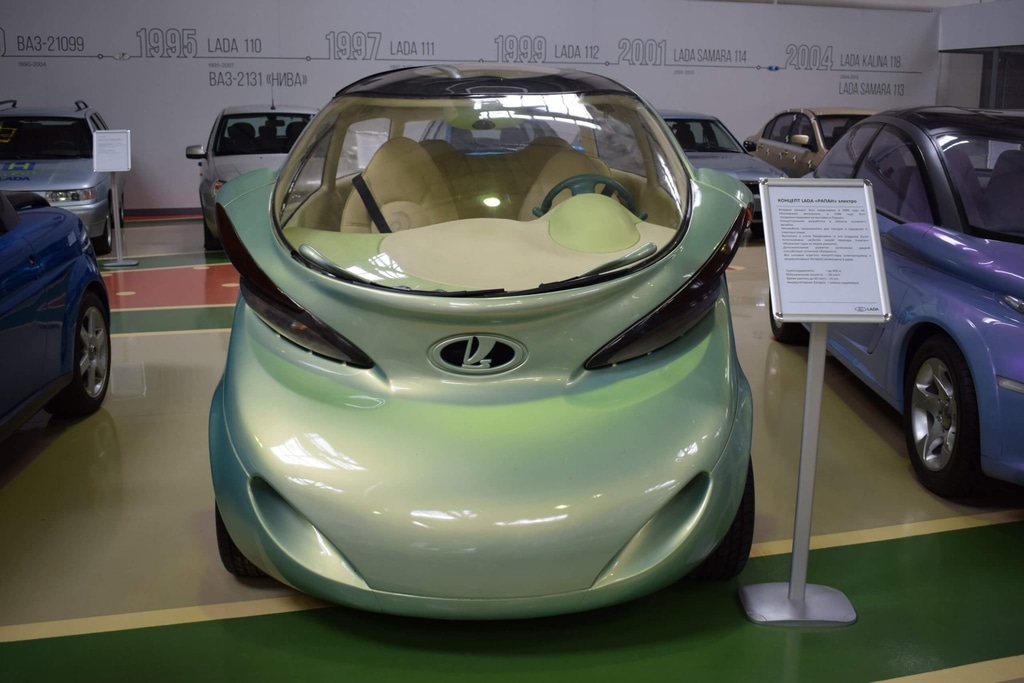 Так в 1998 году АВТОВАЗ выпустил первый экспериментальный электромобиль. Однако в серию электромобиль так и не запустили, а единственный экземпляр оказался в музее. Вид у машинки, надо сказать, довольно экстравагантный.
