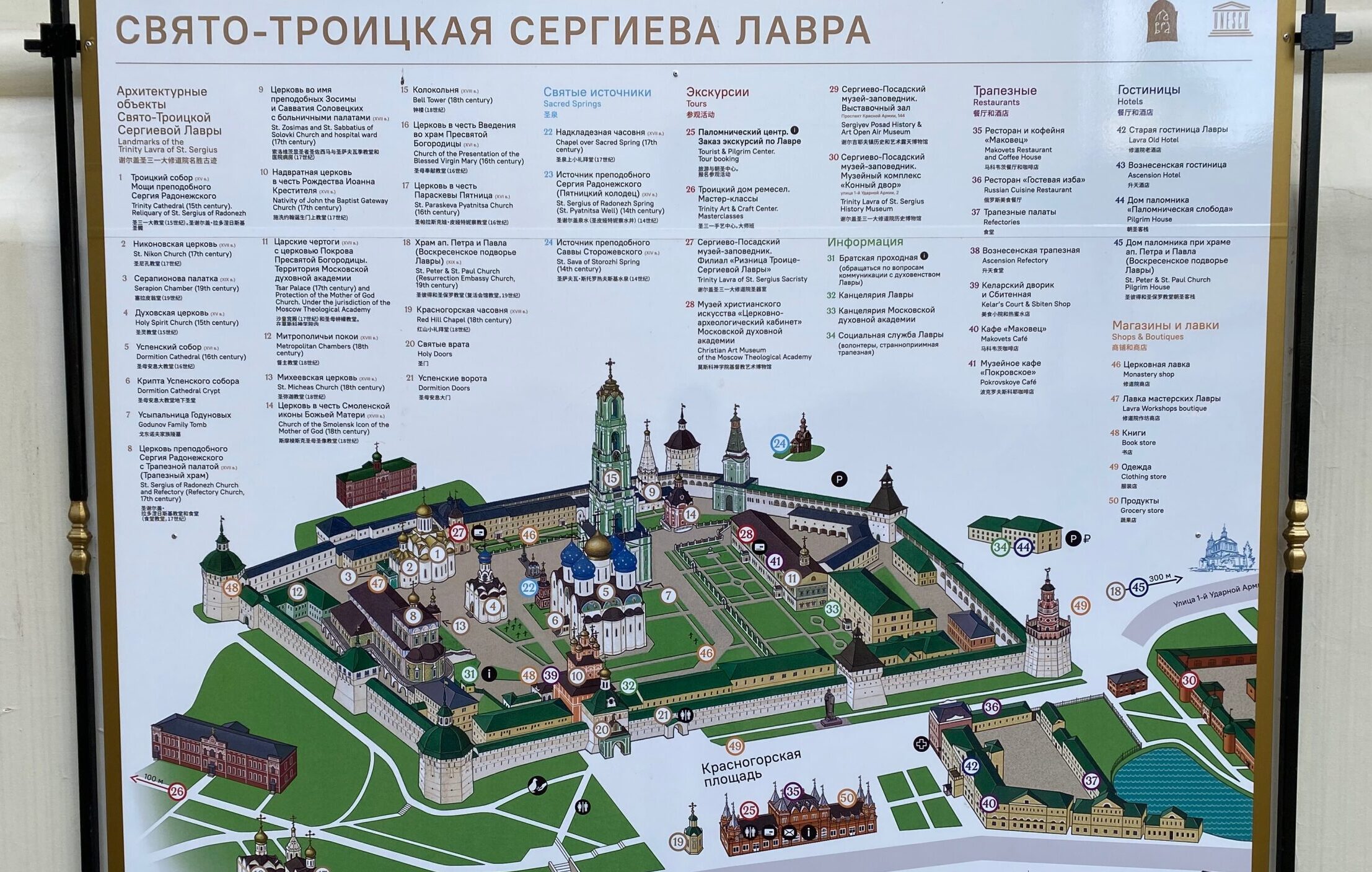 Сегодня Троице-Сергиева лавра живет двойной жизнью. Ее территория поделена между монастырем и государственным музеем. Так Лавра выглядит на плане.