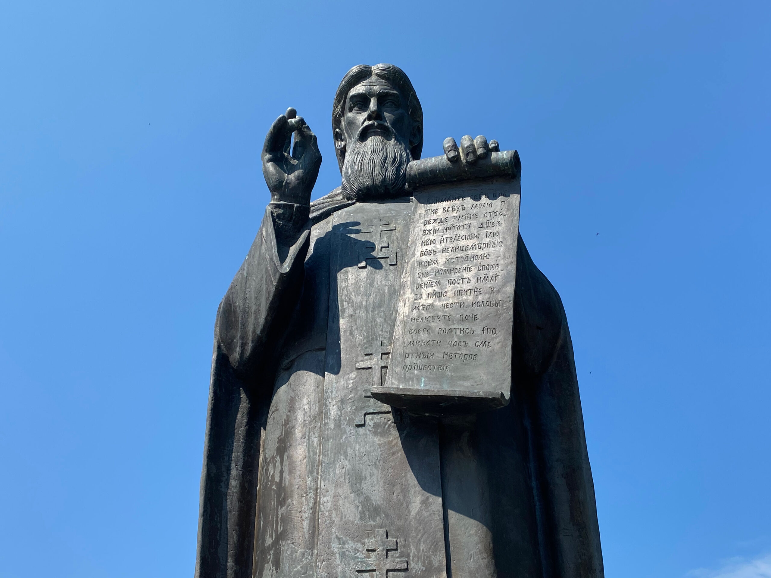 В 2014 году у стен Лавры поставили памятник этому святому. Он словно охранят это место.