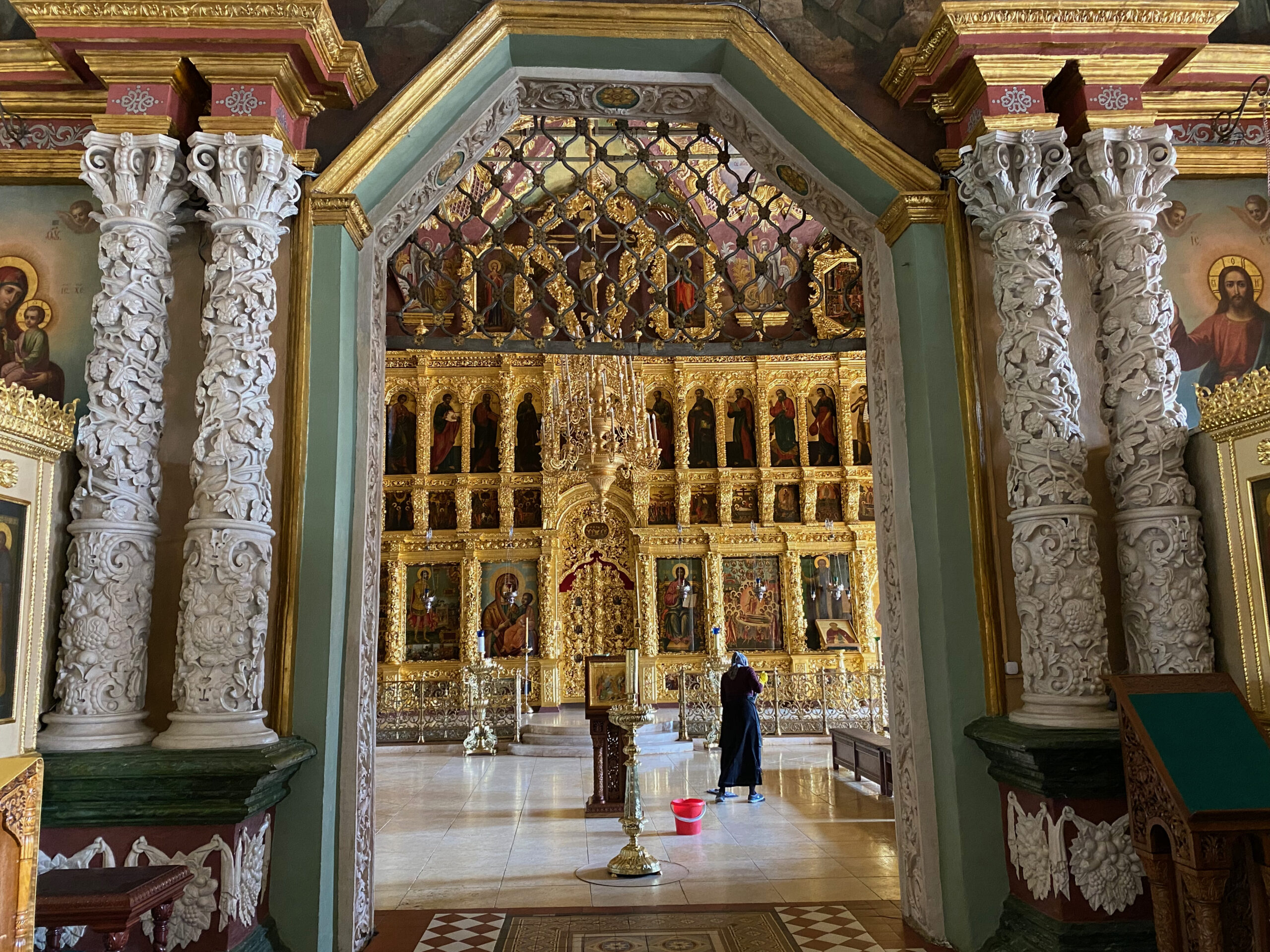 Церковь и трапезную разделяет ажурная решетка.