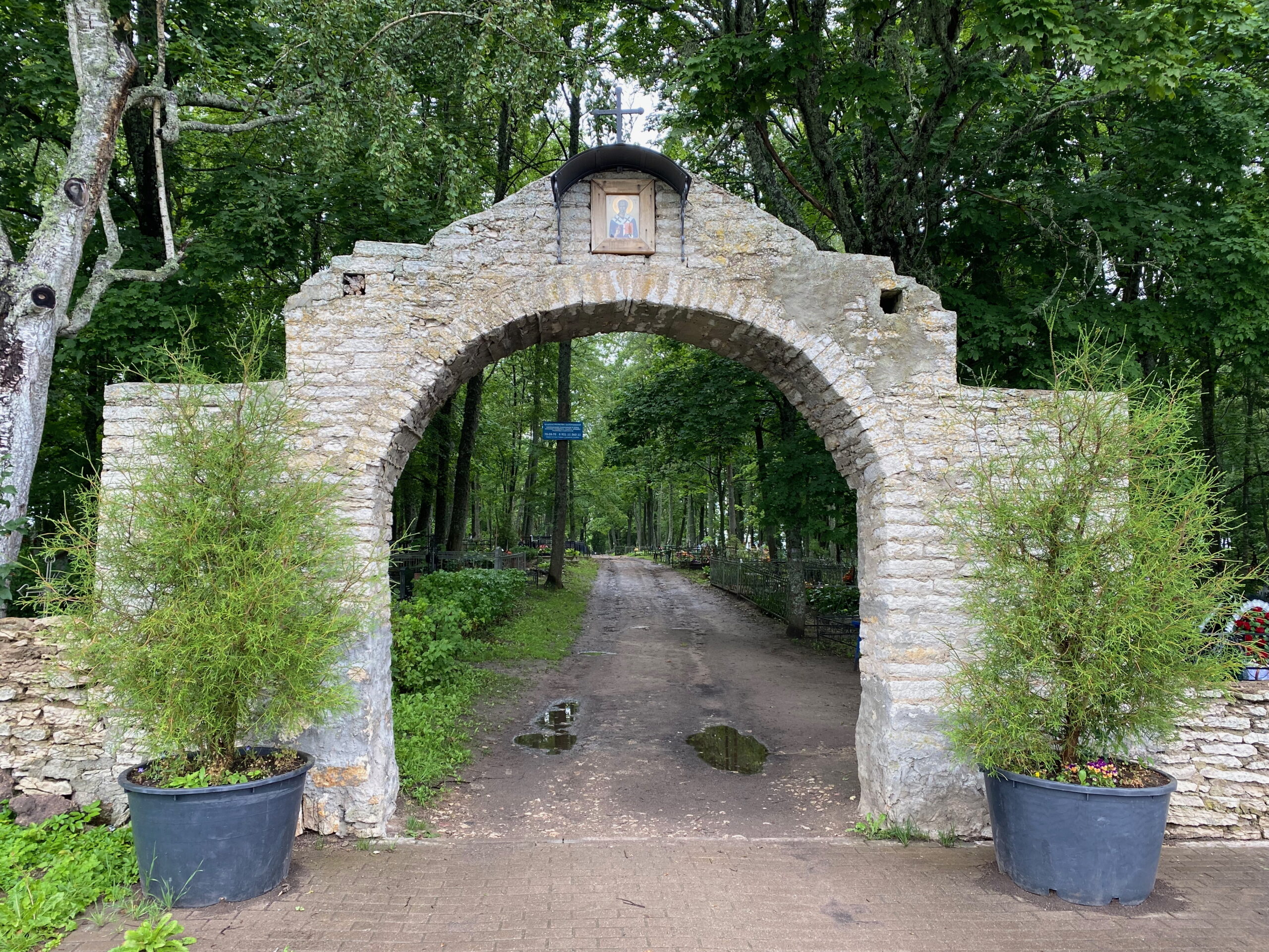 Каждое древнее поселение имело свое кладбище, и Труворово городище не стало исключением. Кладбище располагалось у стен древней крепости. Сегодня на этом кладбище древние захоронения соседствуют с современными могилами.