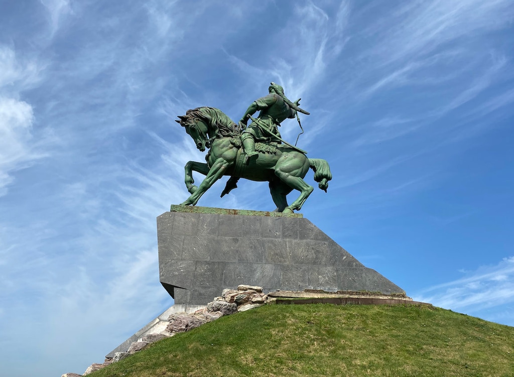 В Уфе на крутом берегу реки Белой стоит неподвижно чугунный богатырь на боевом коне. Это национальный герой Башкирии Салават Юлаев. С него-то мы и продолжим свое знакомство с Уфой. Сегодня у нас — улица Заки Валиди, которая начинается в районе этого монумента.