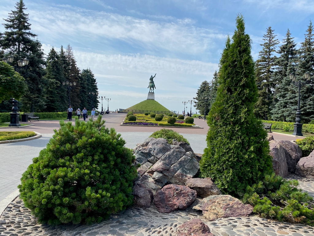 Территория вокруг памятника башкирскому герою называется площадью Салавата Юлаева.