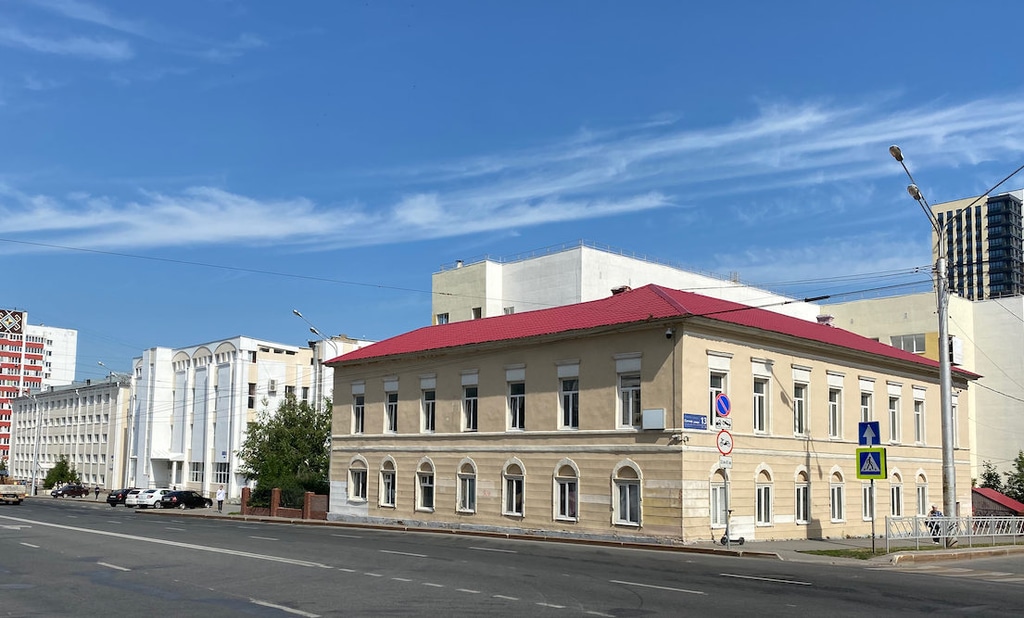Рядом со старинным домом возвышается постройка уже наших дней. Это здание арбитражного суда, построенное в 2000-е годы.