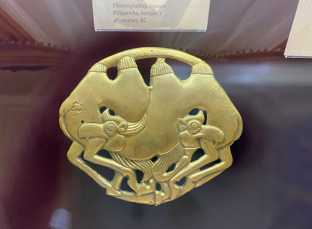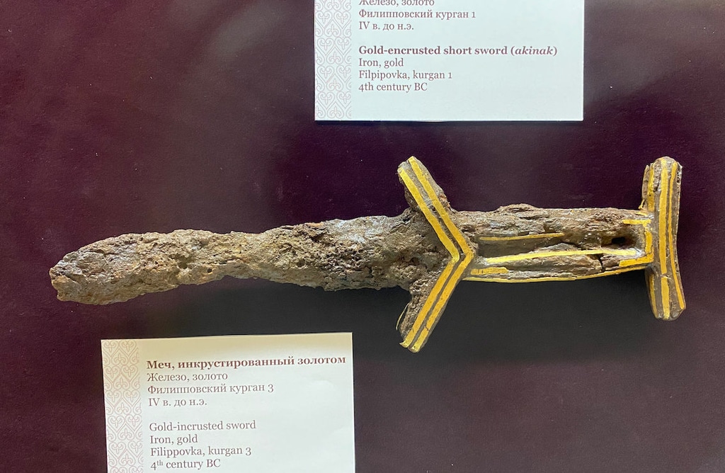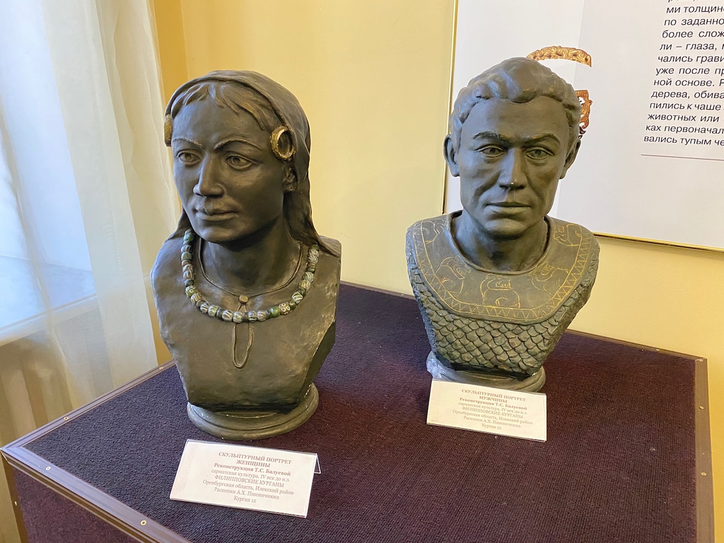 Пожалуй, самые интересные и ценные экспонаты музея археологии и этнографии — это находки из Филипповских курганов. Нашли их археологи в 1986-1990 гг. в ходе раскопок под селом Филипповка недалеко от Уфы. Все эти находки когда-то очень давно, более двух тысяч лет назад, принадлежали кочевникам-сарматам, которые жили в этих местах. Долгие годы они пролежали в могильниках вместе со своими хозяевами и вот совсем недавно увидели свет.