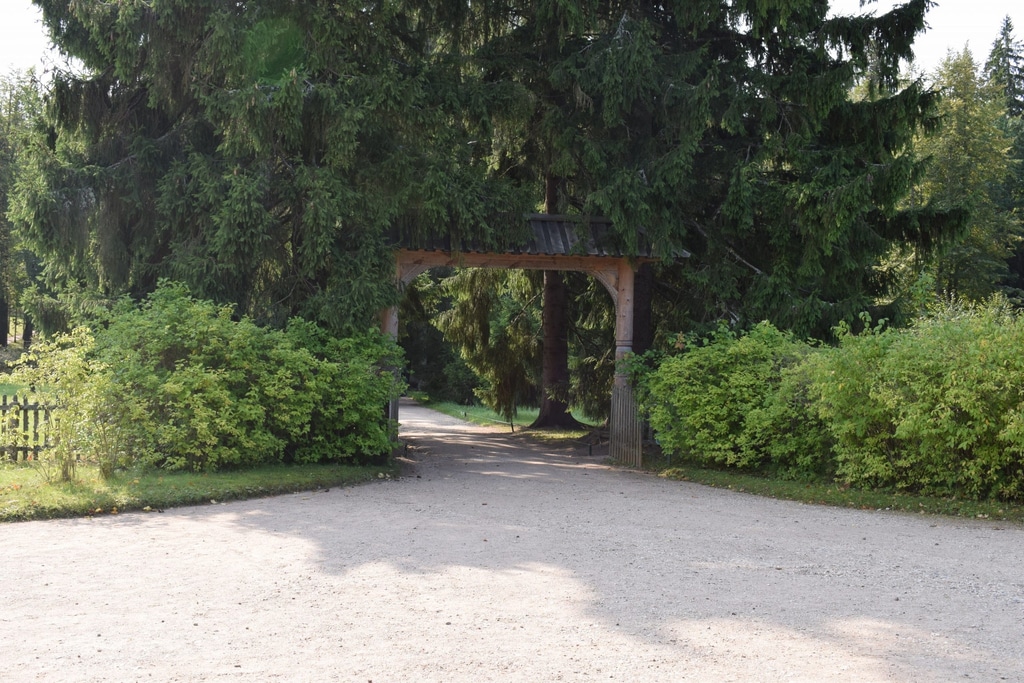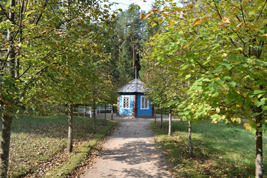 Конечно, весь парк в один день нам осмотреть не удалось, но наиболее интересные места мы все же посетили. Первое, это липовая аллея Керн с беседкой. По ней в 1825 году Пушкин прогуливался со своей соседкой по усадьбе Анной Керн. Ей он посвятил свое знаменитое стихотворение: «Я помню чудное мгновение…»