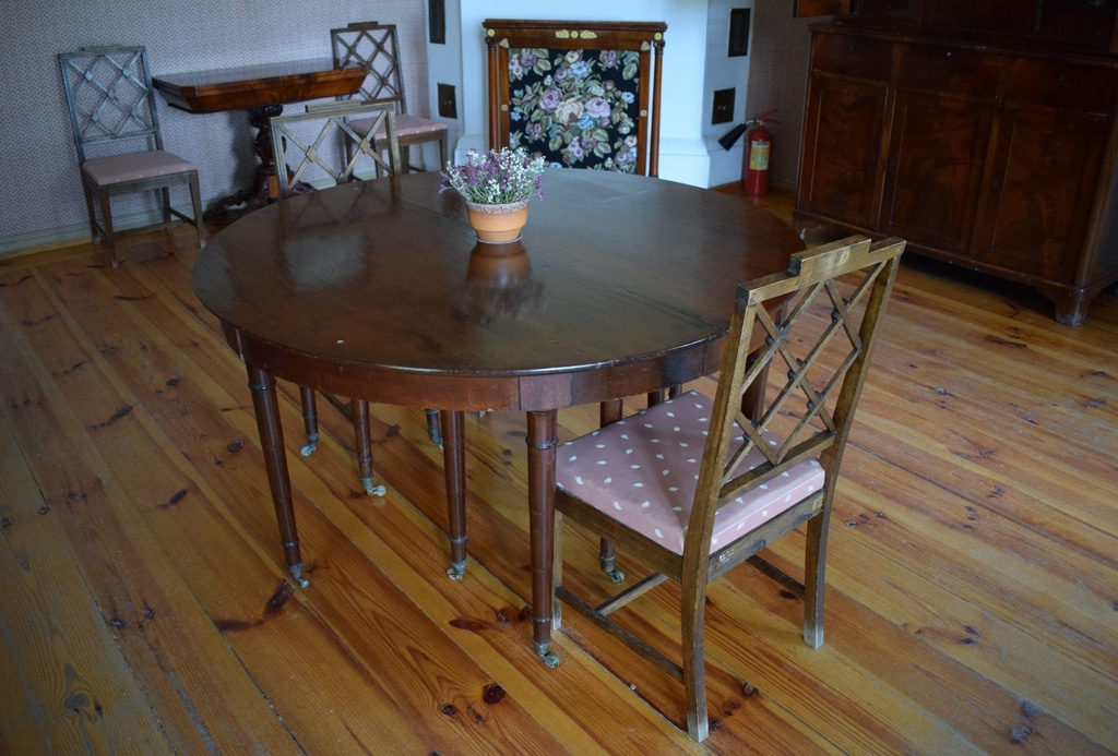 Кроме кабинета и комнаты няни в музее восстановлены гостиная, столовая, комната родителей поэта.