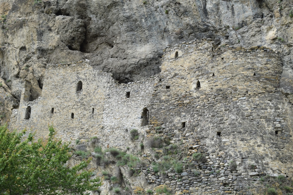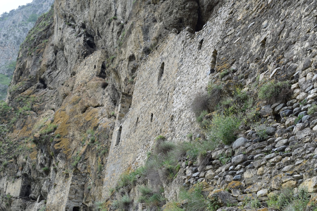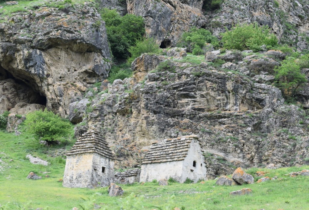 Также недалеко от наскальной крепости виднеются древние родовые склепы осетин.