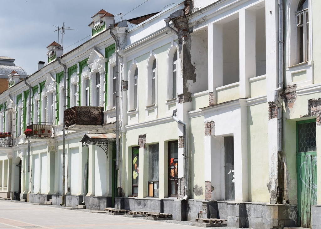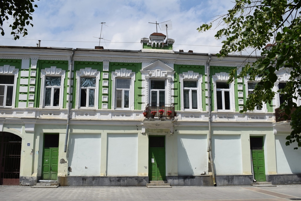 Сразу за кинематографом находится яркий зелено-желтый дом Демокидовых. Он тоже возводился на рубеже 19-20 веков и принадлежал богатому купцу Демокидову. Купец сдавал его в аренду под магазины и получал с этого хороший доход. После революции здание у купца отобрали и использовали для городских нужд. О дальнейшей судьбе хозяина ничего не известно.