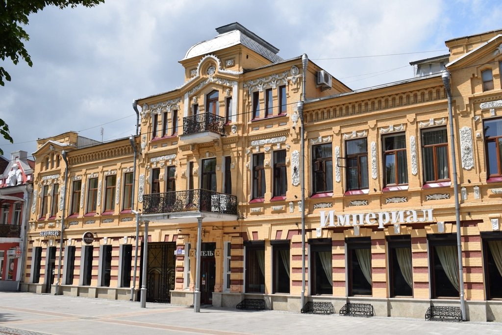 Здание гостиницы «Империал» является настоящим украшением проспекта Мира и всего Владикавказа. Оно находится в очень хорошем состоянии и выглядит потрясающе. Построено здание в конце 19 века и сначала его помещения сдавались просто в аренду. Гостиница открылась здесь в 1899 году и называлась она также как сейчас «Империалом». Это была самая крупная и комфортабельная гостиница города.