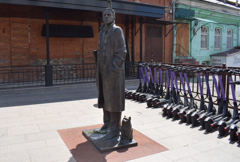 В нескольких минутах ходьбы от театра на проспекте Мира в 2012 году местные власти установили памятник Булгакову. Он стоит недалеко от места, где в начале 20 века писатель жил. Именно во Владикавказе Булгаков распрощался со своей врачебной деятельностью и стал писателем и драматургом. У ног скульптуры примостился бронзовый кот Бегемот из романа «Мастер и Маргарита».