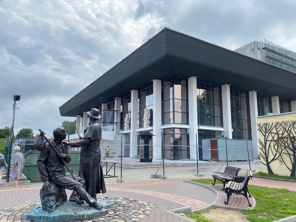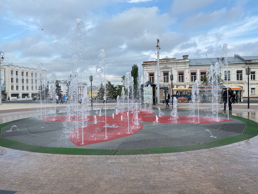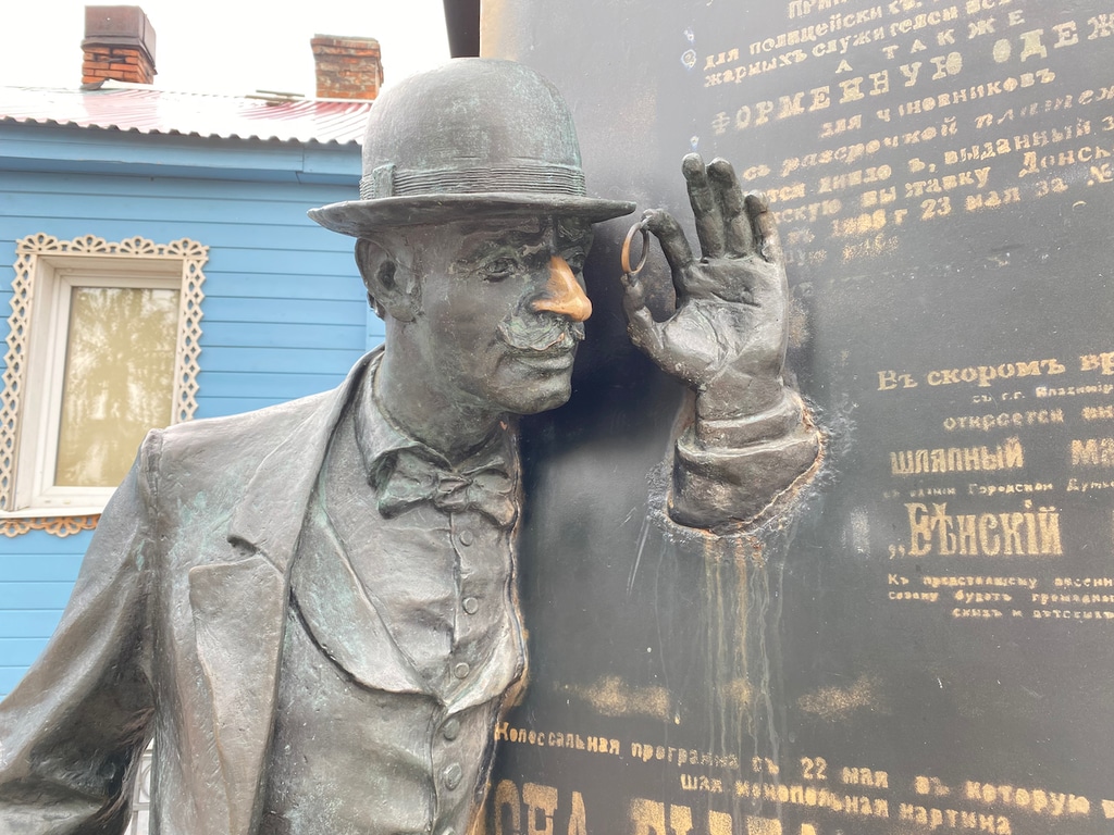 Рядом с театром — симпатичный памятник провинциальному актеру и фонтан.