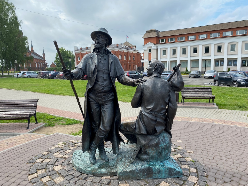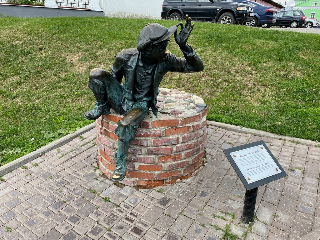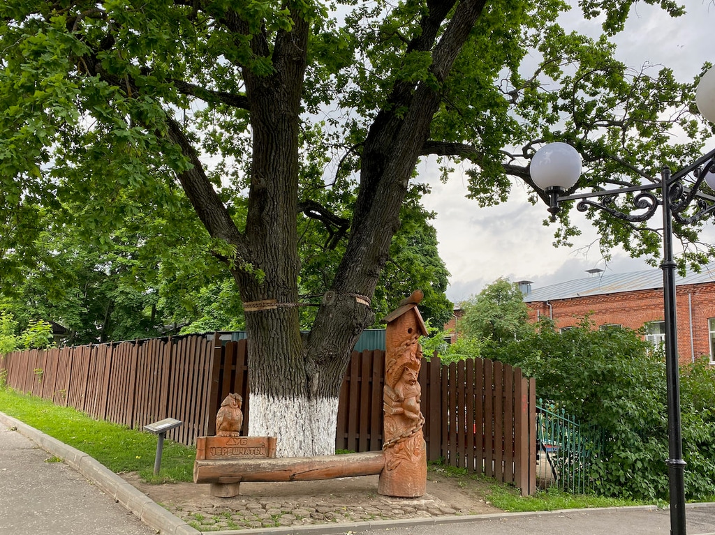 Напротив Спасской церкви более чем столетие растет черешчатый дуб, около которого пристроился Кот Ученый. Тот кот, что в сказке Пушкина «все ходит по цепи кругом». Считается, что если почесать Кота за ушком, то станешь в сто раз мудрее.