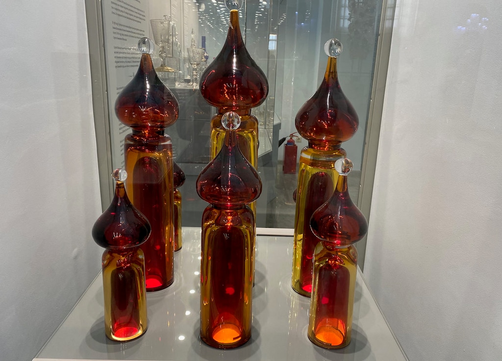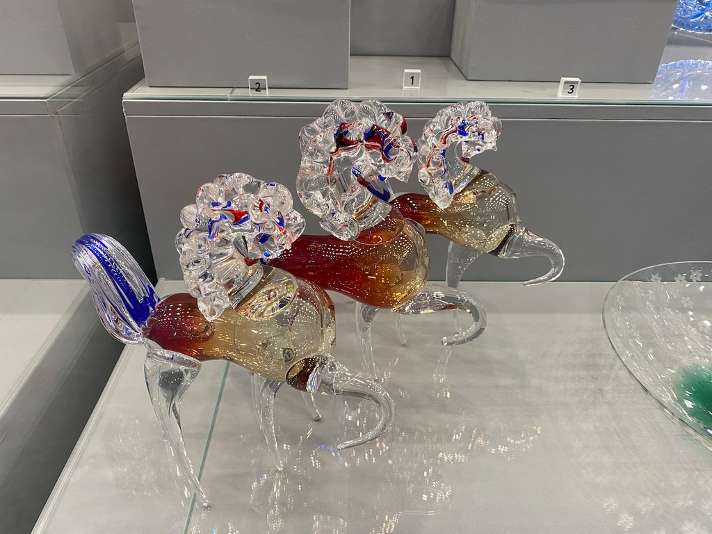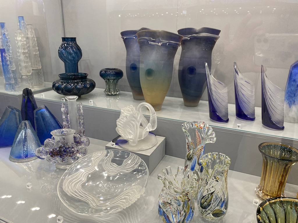 На выставке представлены художественные изделия из стекла и хрусталя Гусевского хрустального завода под Владимиром. Завод очень старый: основан в середине 18 века.