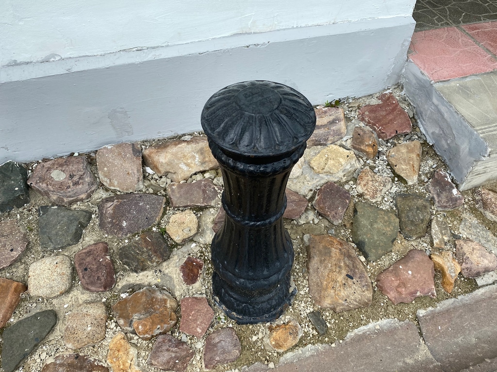 У дома напротив привлек внимание странный столбик. Оказалось, что это коновязь. В 19 -20 веках к таким столбикам привязывали лошадей. Очень любопытно!