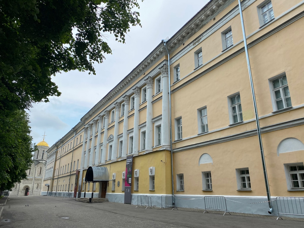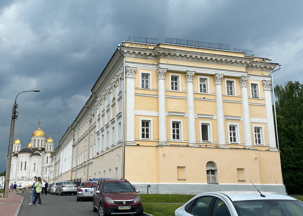 Здание присутственных мест построили в 1790 году еще при Екатерине II. Оно находится между Успенским и Дмитриевским соборами. До революции в нем работали царские губернские чиновники, после революции до 1990-х годов — тоже чиновники, но областные советские. Сегодня здание занимает музей.