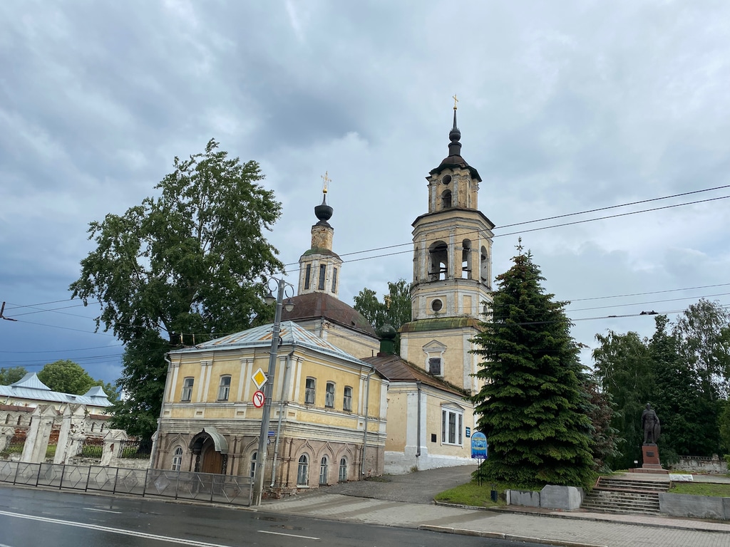 Напротив Спасской церкви более чем столетие растет черешчатый дуб, около которого пристроился Кот Ученый. Тот кот, что в сказке Пушкина «все ходит по цепи кругом». Считается, что если почесать Кота за ушком, то станешь в сто раз мудрее.