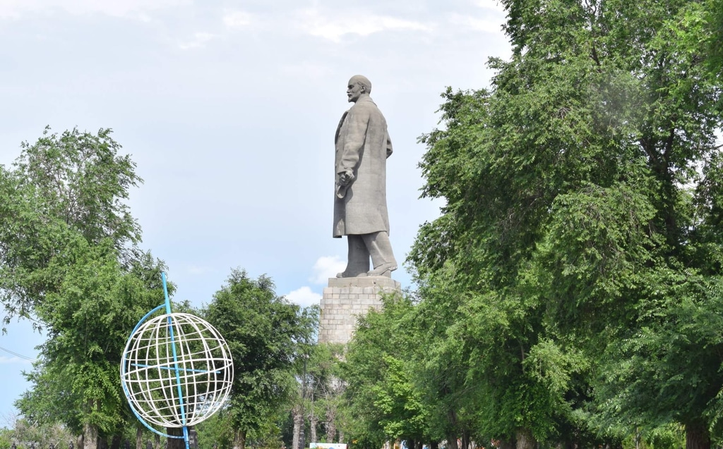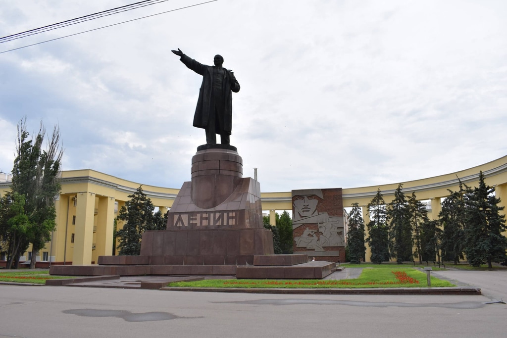 Напротив колоннады в 1960 году установили памятник Ленину. С тех пор площадь вокруг него называется в честь вождя революции.