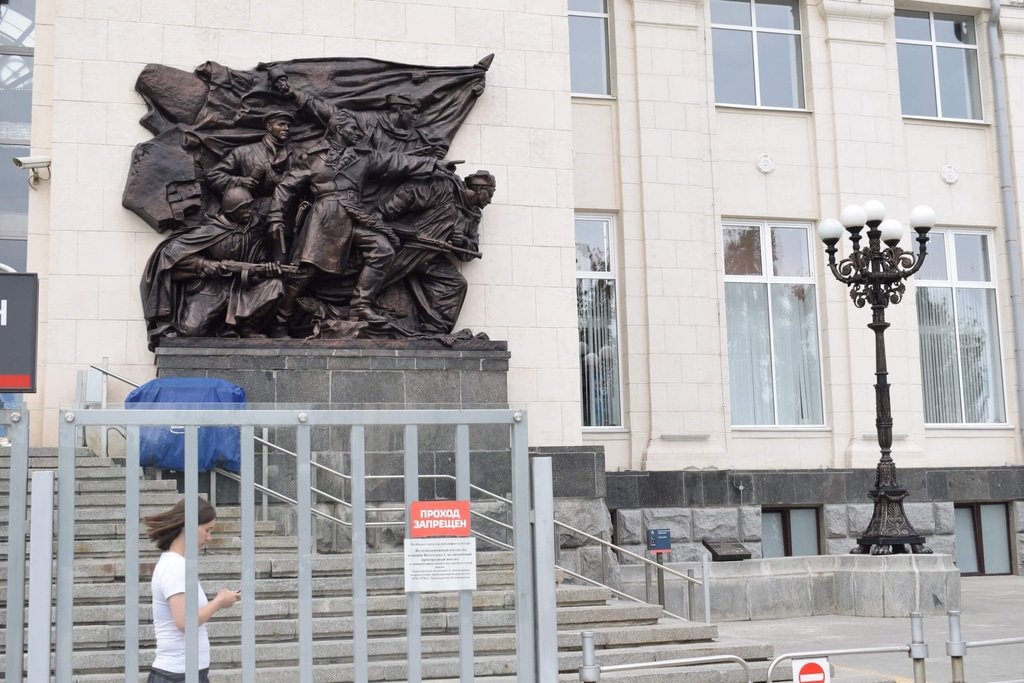 Вход в вокзал украшают пятиметровые барельефы. Один из них посвящен защитникам Сталинграда.