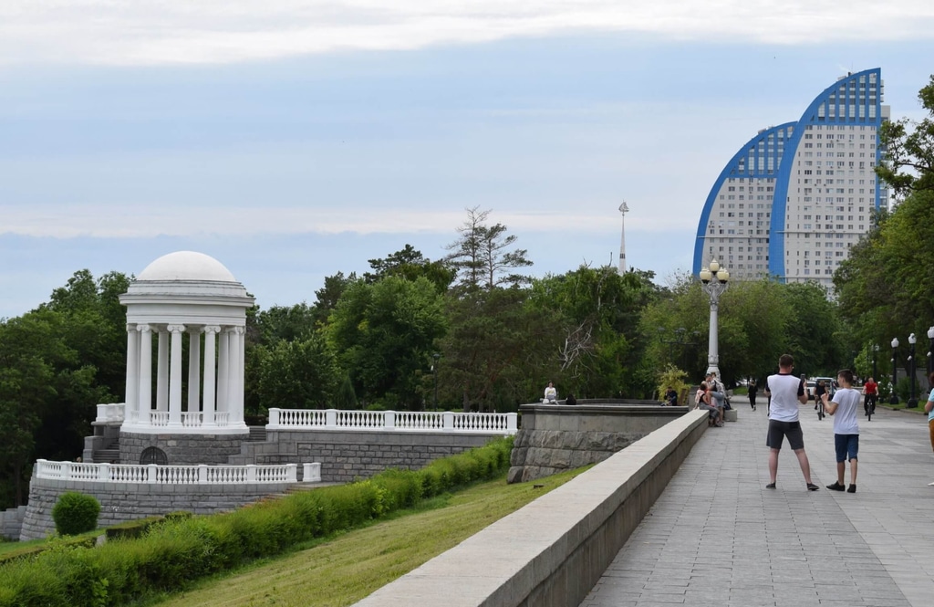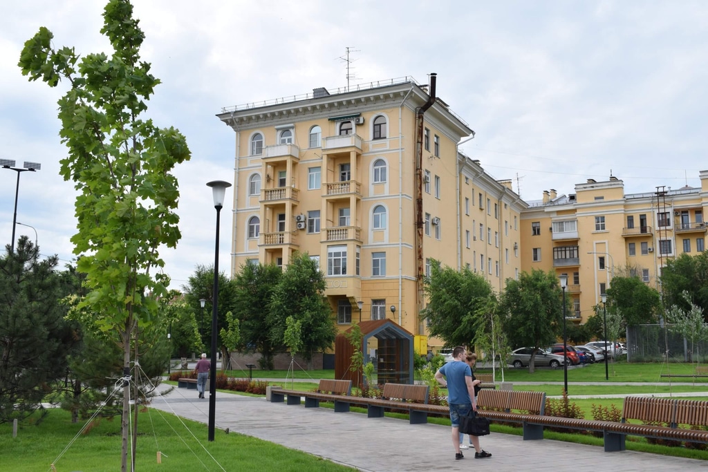 А дальше по маршруту Сквер чекистов. Первый раз слышу, чтобы так называлась какая-то зеленая зона. Но опять же это сделано не просто так, а имеет свой смысл. Перед Сталинградской битвой в городе была сформирована дивизия войск Наркомата внутренних дел (НКВД). В ней, в основном, воевали чекисты и милиционеры, а блиндажи дивизии находились как раз в районе сквера чекистов.