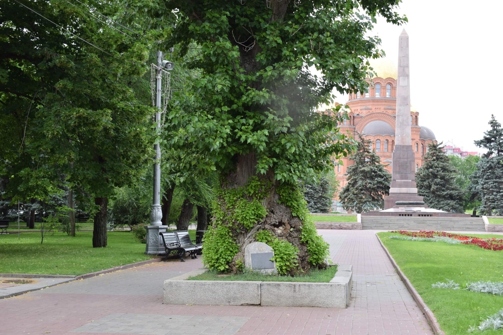 Здесь же в сквере растет знаменитый тополь, чудом выживший во время боев.
