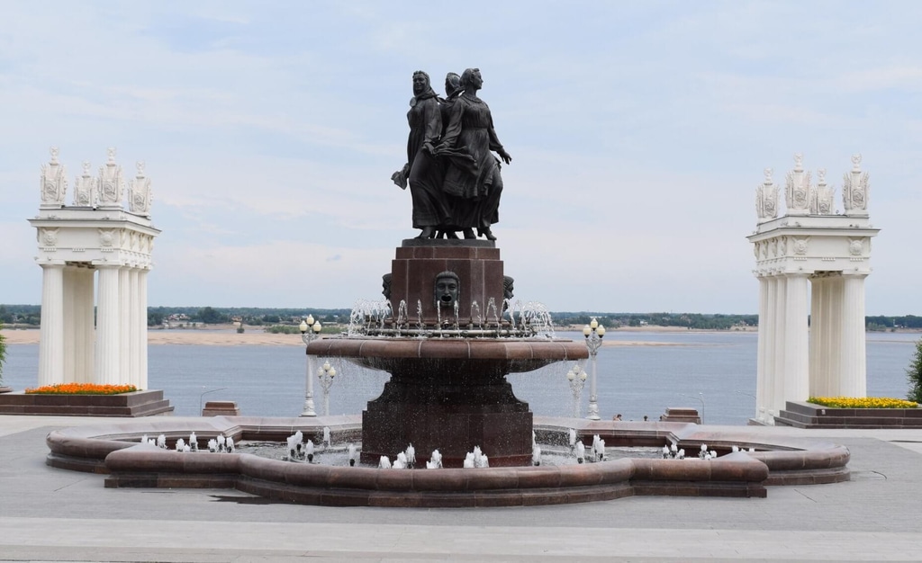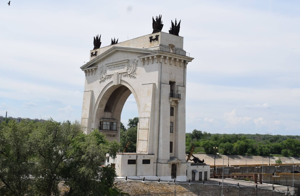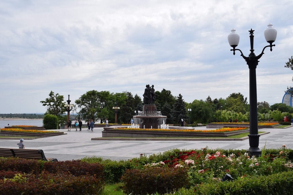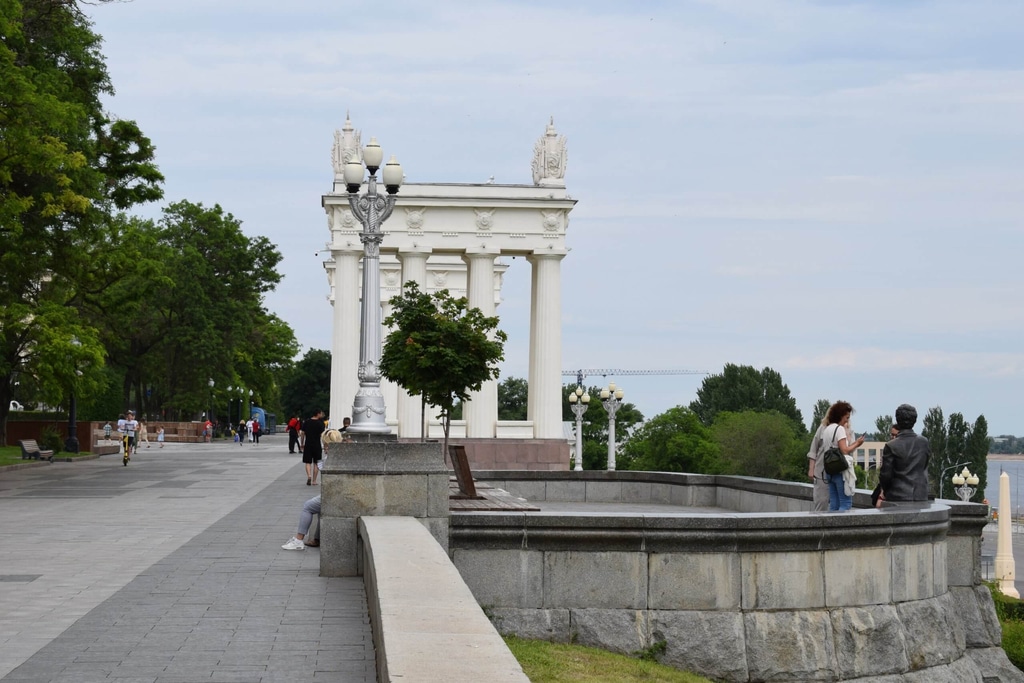 Самой красивой частью набережной является место с фонтаном «Искусство» и Парадными воротами Волгограда.