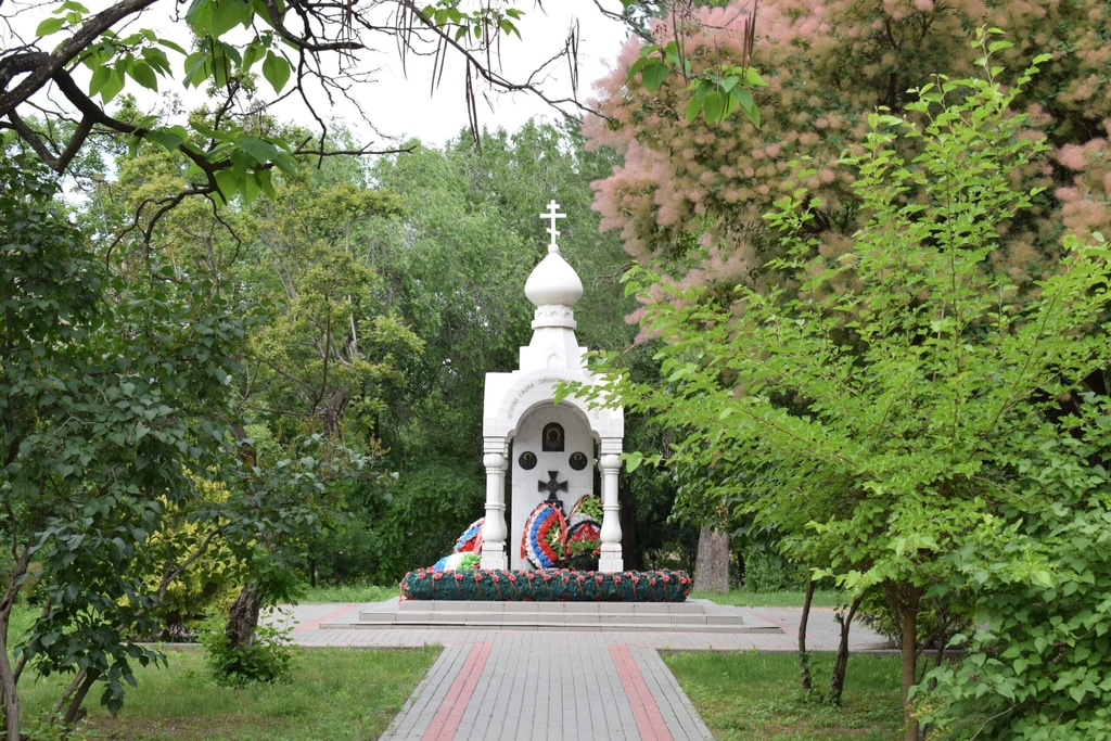 И еще один памятник в сквере — это беломраморная часовня. Ее установили в 2012 году также в память о победе в Великой Отечественной войне.