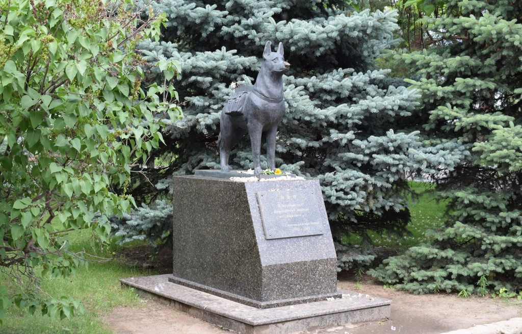 В 2013 году в сквере появился еще один памятник. Он посвящен служебным собакам-подрывникам, которые бок о бок воевали с бойцами дивизии. Их главной задачей был подрыв танков и бронетехники, с чем эти умные животные успешно справлялись.