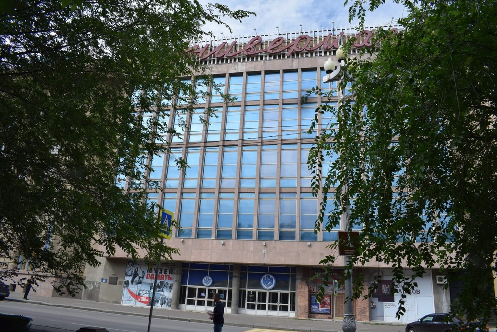 Здание выстроили в советское время в 1938 году. Это была одна из красивейших построек города. Однако торговля в Универмаге шла недолго, началась война. В августе 1942 года верхний этаж здания был разрушен бомбежкой. Когда бои за город подходили к завершению, подвал Универмага облюбовал немецкий штаб во главе с Паулюсом. Здесь Паулюс и был взят в плен.