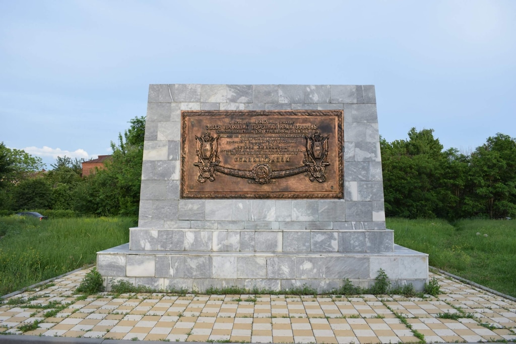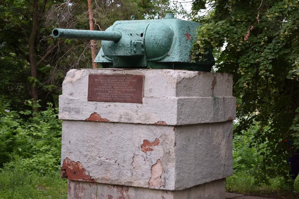 Кроме памятного знака на переднем крае обороны стоит вот такая танковая башня.
