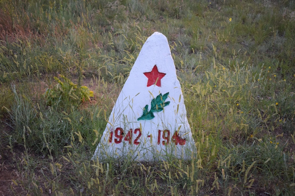 По всей Лысой горе стоят белые бетонные пирамидки с красными звездами. Ими обозначена линия фронта.