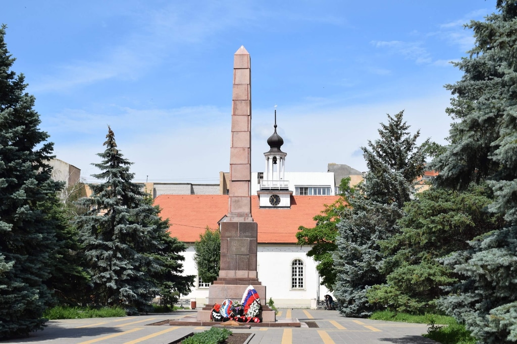 Поодаль от памятника возвышается небольшая церковь Иоанна Предтечи. Церковь открылась для верующих в 2001 году. Раньше на этом месте стоял другой храм, построенный в 1664 году. Это был главный христианский центр для всего местного казачества. Однако в 1932 году, как и большинство других храмов, церковь, к сожалению, разрушили. Возрождение же ее началось уже постсоветское время.